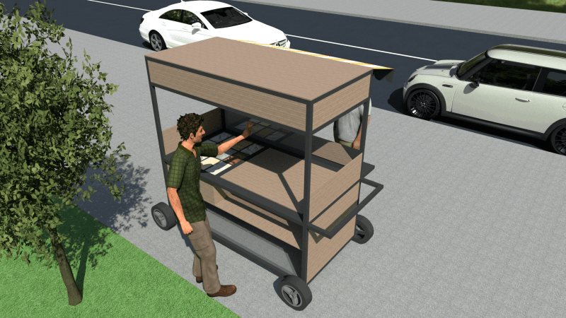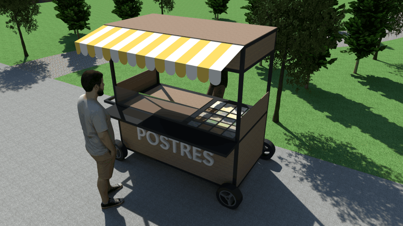 Recordando el concepto del despacho de apoyar a comercios locales, se elaboró un mueble para exterior a uno de nuestros clientes que requería un mueble sobre medida para sus necesidades laborales y que fuera apto de trasladarlo y ubicarlo en cualquier punto en cualquier ciudad, ya sea en ferias, parques, exposiciones y espacios públicos.