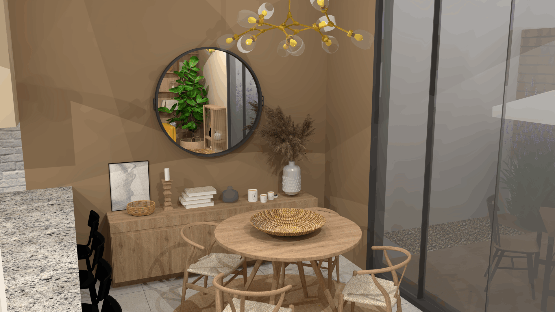 Este proyecto de diseño de interiores se realizó en una casa recién construida en el área de Refugio en Querétaro. Nos inspiramos en el estilo japonés wabi-sabi seleccionando materiales apegados a la naturaleza como lo es la madera, el rattan, texturas naturales y vegetación endémica interviniendo en la zona de terraza, sala, comedor, jardín y área de lavado.